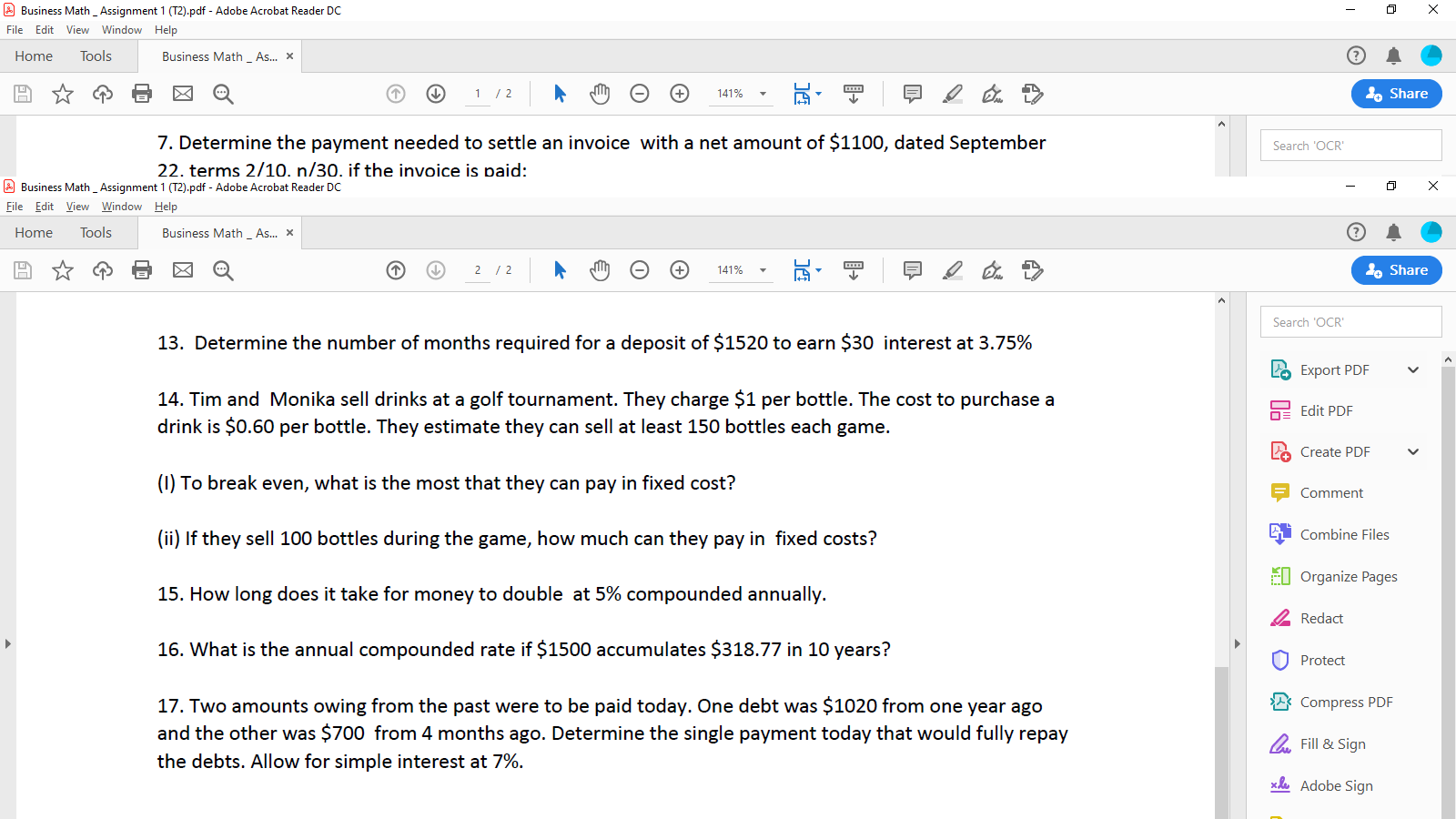 Business Math Assignment 1 T2 Pdf File Viewer Chegg Com