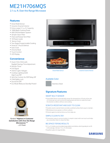 User Manual Samsung Me21k7010ds Aa 2 1 Cu Ft Over The Ran Manualsfile